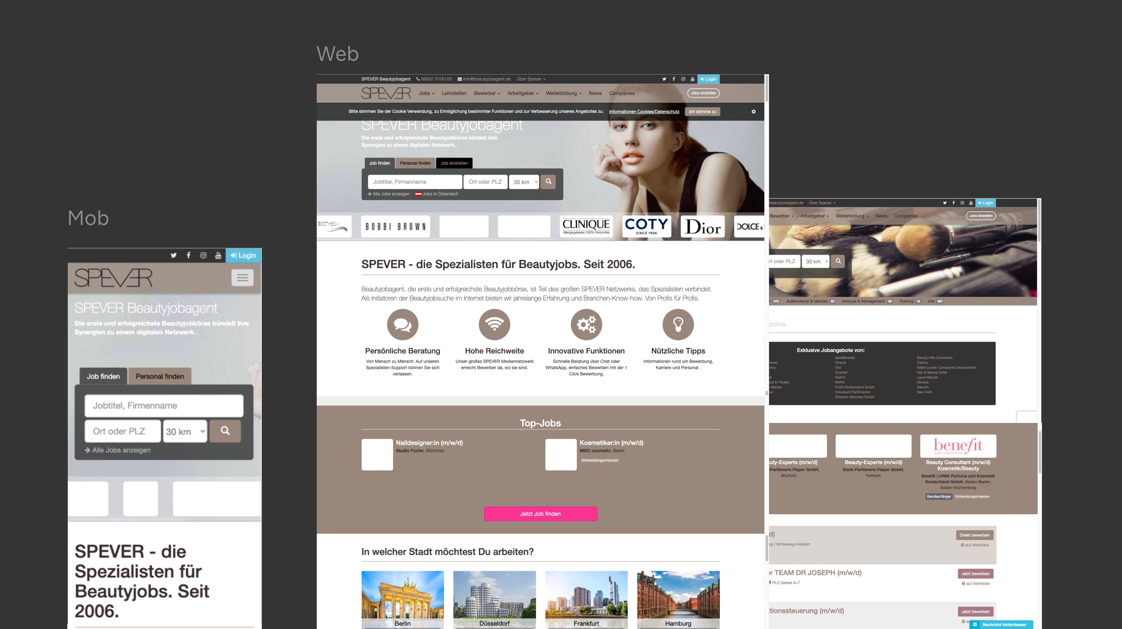 Beauty Job Agent is one of Germany’s largest niche job platforms focused on the beauty industry, helping professionals find roles across cities, brands, and categories. However, the experience didn’t match the urgency of job seekers. My Role: UX/UI Designer (collaborated with 1 designer) Scope: Landing page, job search UX, listing & detail pages Focus: Improving discoverability, reducing friction, increasing applications